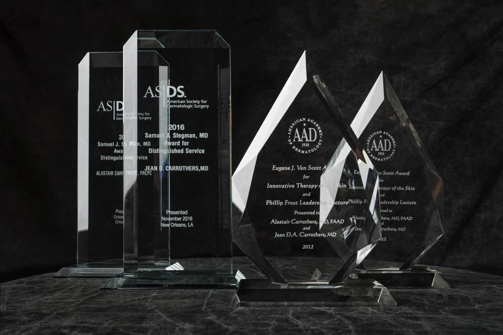 Renowned for innovation and expertise, Dr. Jean Carruthers is the recipient of countless prestigious awards and distinctions, most notably receiving the Leadership and Innovation Award from the American Academy of Dermatology (AAD) in 2014 and the highly prestigious Samuel J. Stegman Award for Distinguished Service by the American Society for Dermatologic Surgery (ASDS) in 2016 for her work as a pioneer in the cosmetic use of botulinum toxin.