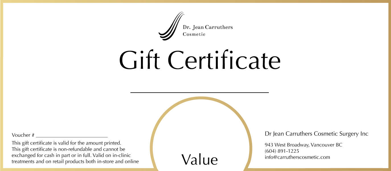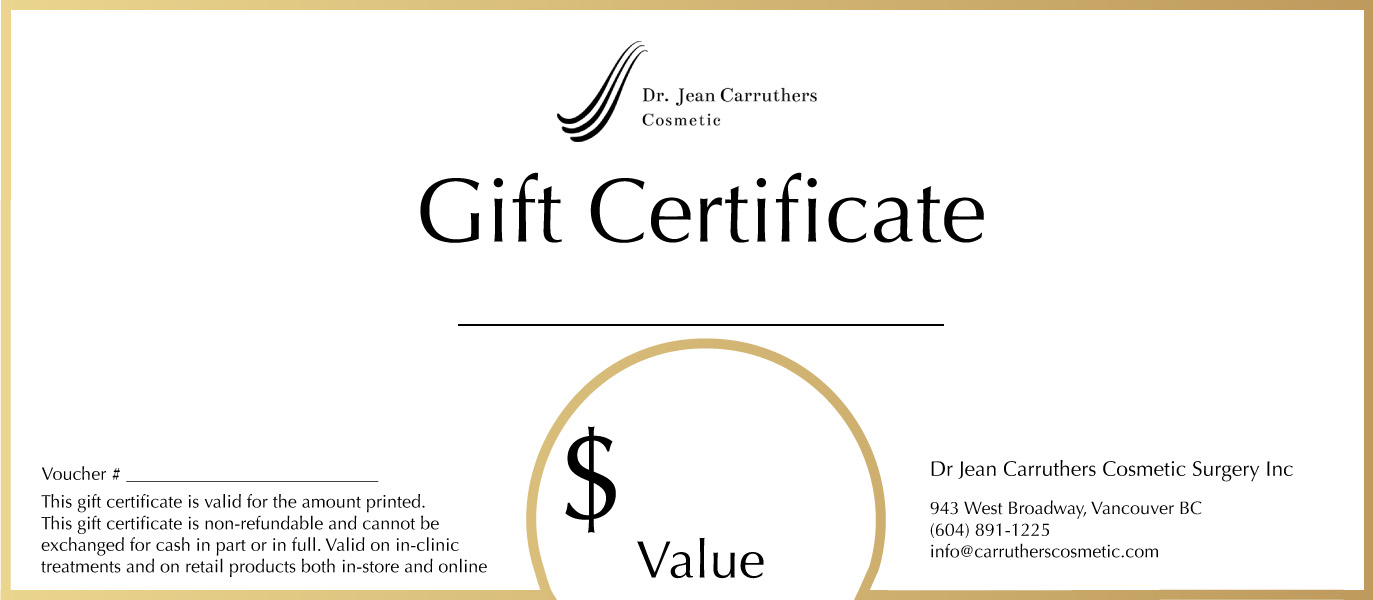 Spoil your friends and family (or just yourself) with a Carruthers Cosmetic gift certificate, redeemable towards in-clinic treatments or skincare purchases online.