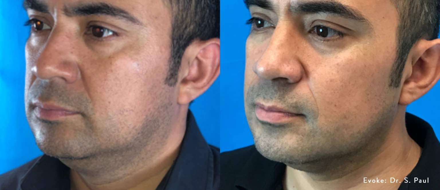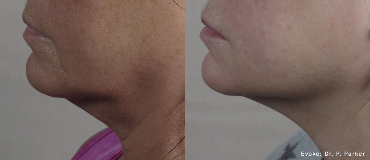 At Carruthers Cosmetic, we offer Evoke as a skin tightening treatment for the jawline, neck, and chin areas.